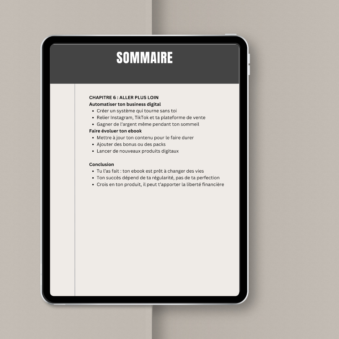Nos eBooks te guident pour construire une source de revenus durable, sans dépendre de personne. Fini les limites imposées. Tu choisis ton projet, tu développes ton activité, et tu crées une vie alignée avec tes valeurs.